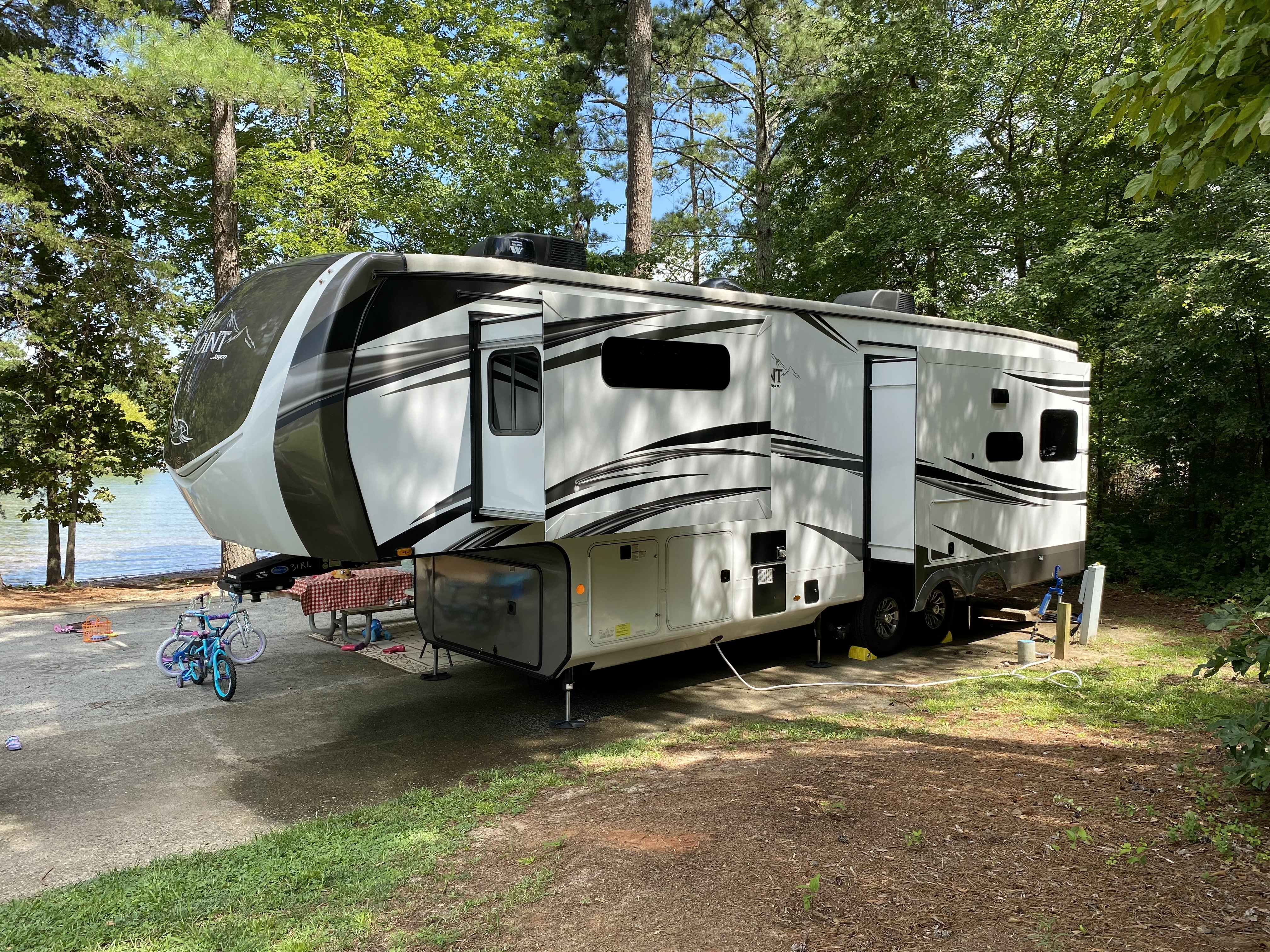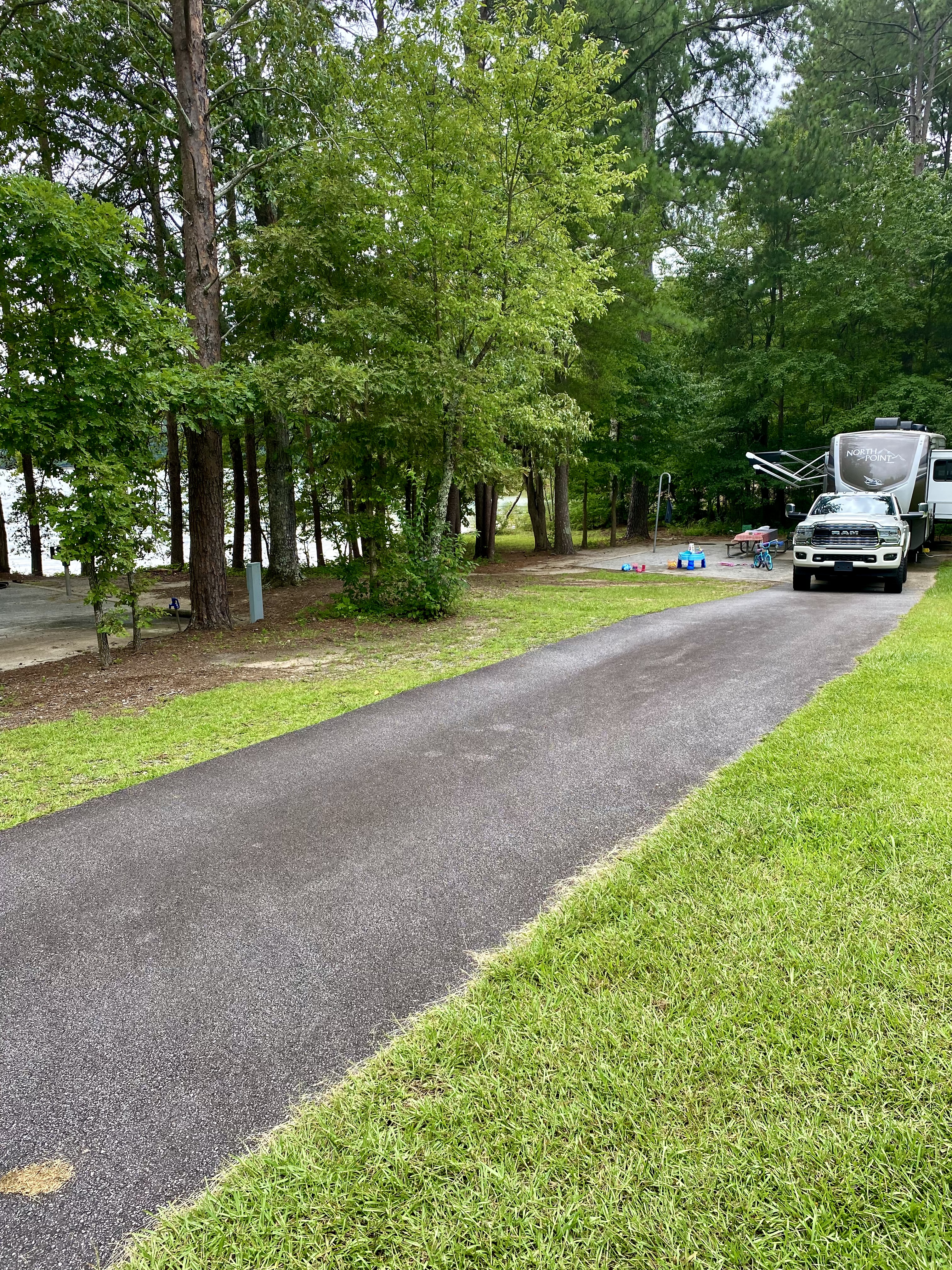 We’ve been camping at Bald Ridge Creek COE campground since we got our first travel trailer in 2017. We’ve tried almost all of the COE campgrounds on Lanier, Allatoona & West Point Lake. We’ve always liked this one because of the really nice beach area and great playground for the kids. The sites are also really private and shaded for the most part. There are a ton of really nice sites right on the water (see list of favorites above). To get these sites, you have to book about 6 months in advance. For our August 1st trip, we booked on February 13th and only had a couple of our favorite options left. We typically do 3-day weekends and stay from Friday evening through Monday morning. We started doing this a couple of years ago and absolutely love staying that extra day. For us, 2 nights just doesn’t feel like enough time with all of the effort it takes to pack up for the trip. Plus, we love walking the campground on Sunday when most people have left and checking out our favorite sites. Extra bonus is we avoid the long dump line on Sunday’s 😎.